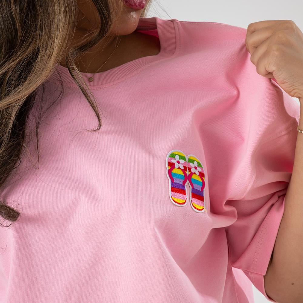امنحِ لإطلالتك لمسة من المرح والأناقة مع تيشيرت وردي سليبر قطن بوليفارد، تصميمه العصري وتطريزه الفريد يجعل منكِ محط الأنظار في كل مكان، حيث يبرز أسلوبك المميز وروحك المرحة.