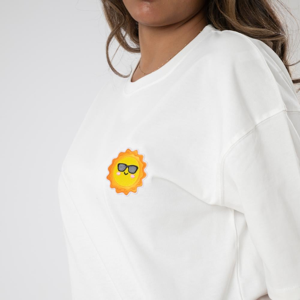 أطلّ بإشراقة الصيف، استقبل الصيف بأناقة وروح مرحة مع تيشرت قطن ابيض شمس الشموسة من بوليفارد، تصميمه العصري وتطريزه المميز يضفي لمسة مشرقة على إطلالتك، ليكون رمزًا للحيوية والإشراق، تمامًا كما تشرق الشمس لتضفي الدفء والجمال على كل يوم.