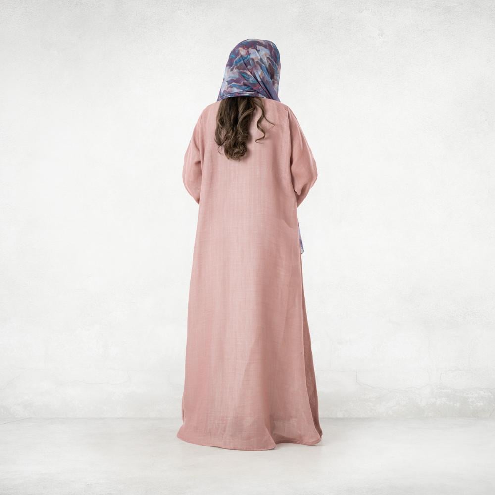 Add a touch of distinction and elegance to your wardrobe, and make every look reflect your modern and unique taste. Get this pink Indian linen abaya now to shine with confidence and beauty on every occasion.