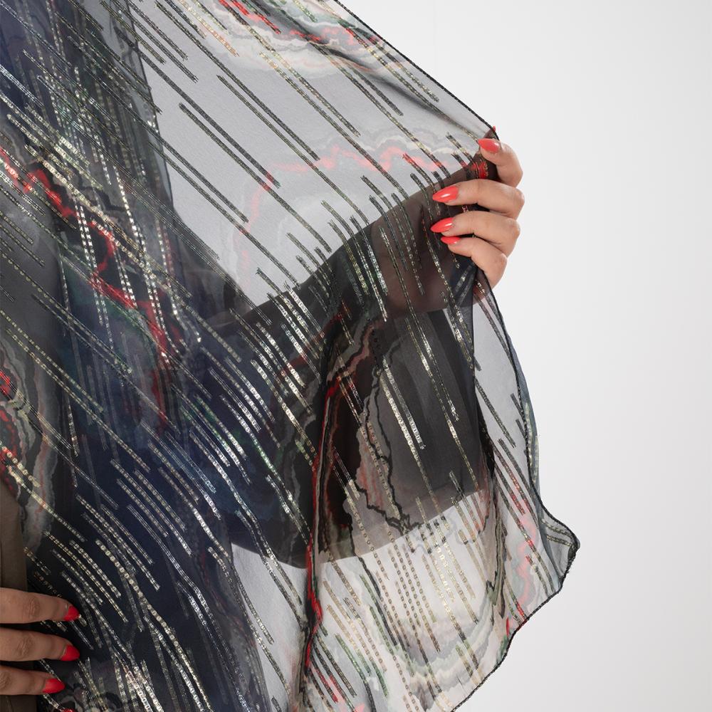 For a look that stands out, choose the distinctive brown abaya. With its modern design and luxurious light crepe fabric, this piece combines elegance and comfort. It comes with a colorful shawl that adds a fresh, elegant touch, giving you a unique look that's suitable for all occasions.